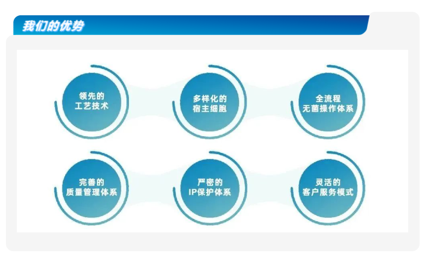 由于复杂的技术机制、高门槛的工艺开发和大规模生产、严苛的法规监管要求、有限的产业化经验,使得CGT产品相比传统制药更加依赖CDMO。高腾生物顺应产业发展规律,依托汉腾生物已成熟的大分子CDMO服务平台,致力打造国际化一站式CGT CDMO平台,专注于提供蛋白、质粒、慢病毒、腺病毒、AAV、免疫细胞、干细胞等生产服务,包括工艺和分析方法开发和验证、方法学转移、小试、中试、GMP/商业化生产、IND注册申报等一站式专业化服务, 竭诚为客户提供生物类药物药理/毒理批、临床试验用药及上市后商业化生产。